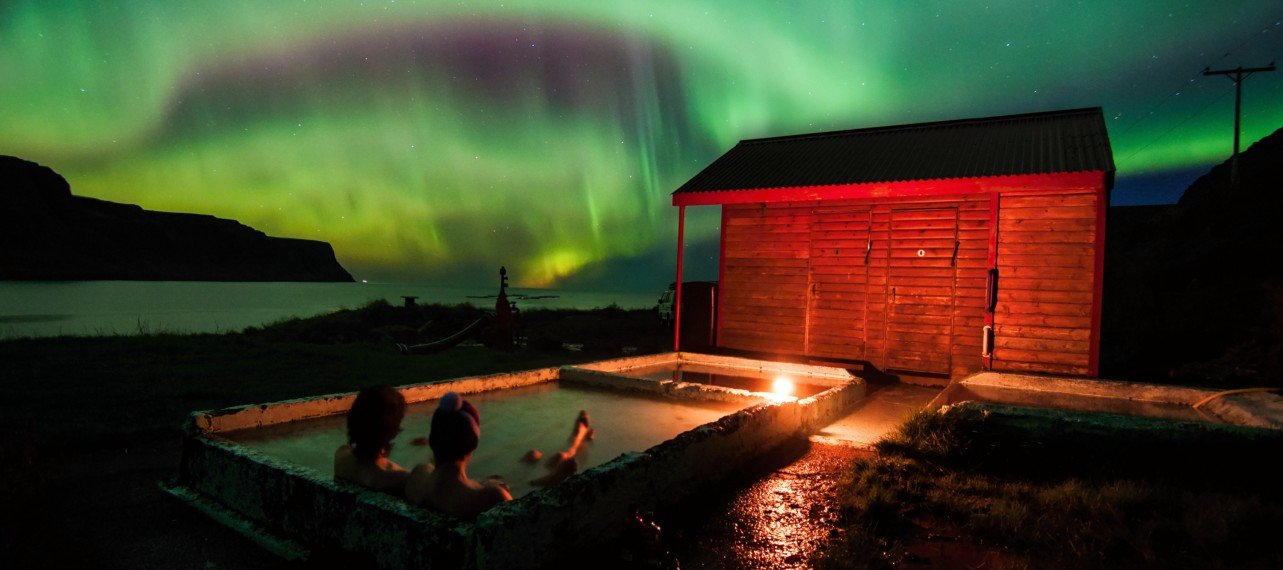 • Recharge in the pools of a secret thermal lagoon as the Aurora Borealis dance above  you