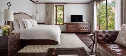 There are seven tiers to the rooms at Casa Medina, ranging from the lowest – a Superior room – up to a one-bedroom suite. Each space comes with a television, Nespresso machine and docking station. Premier King rooms feature three areas in total: a bathroom, cloakroom/entrance, and a lounge and bedroom. Some of them also have a natural wood fireplace – ideal for a quiet evening in.