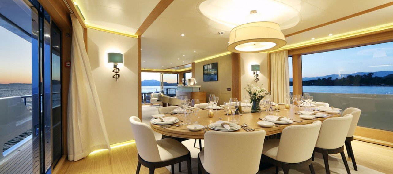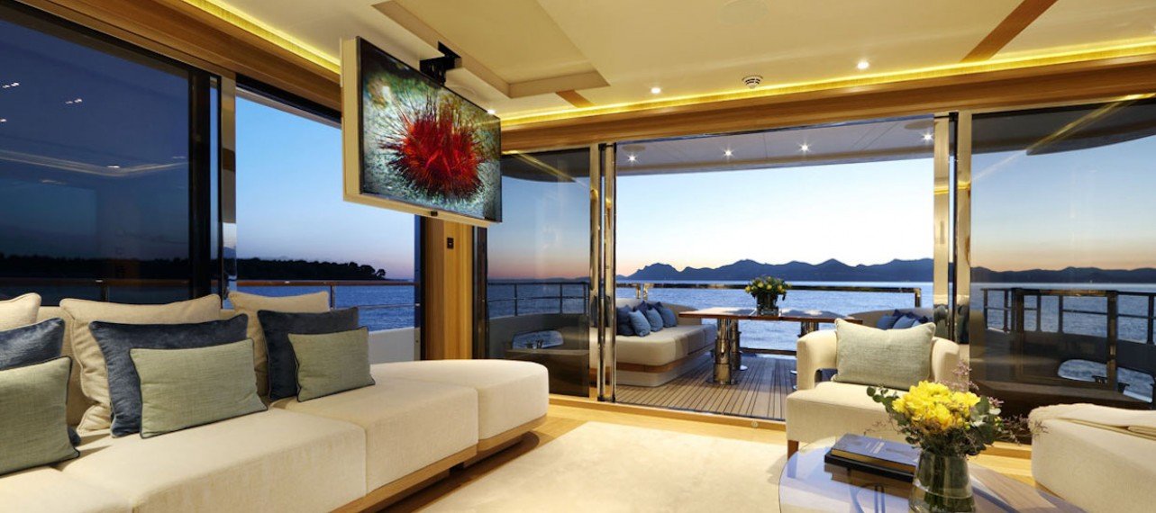- Full height sliding glass panels in main saloon